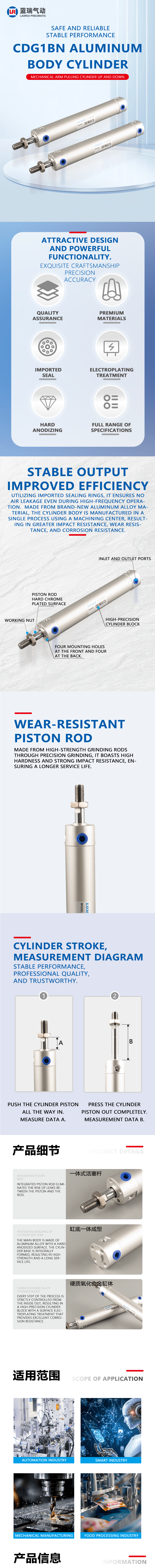 CG1BN series air cylinder is a highly adaptable lightweight pneumatic actuator, featuring high precision, low loss and multi-scenario compatibility, meeting the power drive needs of various automated equipment.